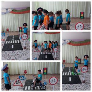 «Ақбөбек» бөбекжай-бақшасында «Еркем-ай» ересек тобының тәрбиеленушілері «Жолда жүру ережесін сақтайық!» тақырыбында көрініс қойды. Тәрбиеші: Мухитова Базаргуль Мухитовна